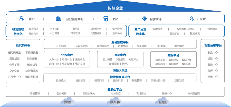 9001cc 以诚为本 9001cc海岳PaaS平台,围绕柔性可装配、超级自动化两大技术群组,汇聚云原生、微服务、低代码等多重技术,涵盖低代码平台inBuilder、数据中台inDataX、智能物联网平台inIoT、云原生平台、大模型平台、混合集成平台、智能运维平台等核心子平台,助力企业构建应用敏捷创新、端到端流程驱动、一站式数据管理、数实融合、运维全景可观测等数字化核心能力,打造快速、可靠、响应、直觉、智能的全新数字化交互体验,支撑构建敏捷应变、实时智能的未来智慧企业。