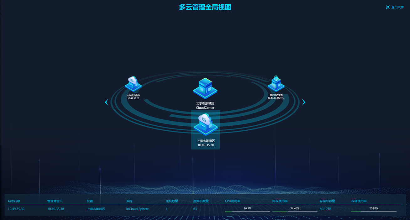采用自主研发、基于 KVM 深度定制的计算虚拟化软件 InCloud Sphere,支持资源预留、热添加、GPU 直通、vGPU、USB Over IP、 DRS、DRX、裸机管理、虚拟录影机、磁盘双活等多种高级特性 |